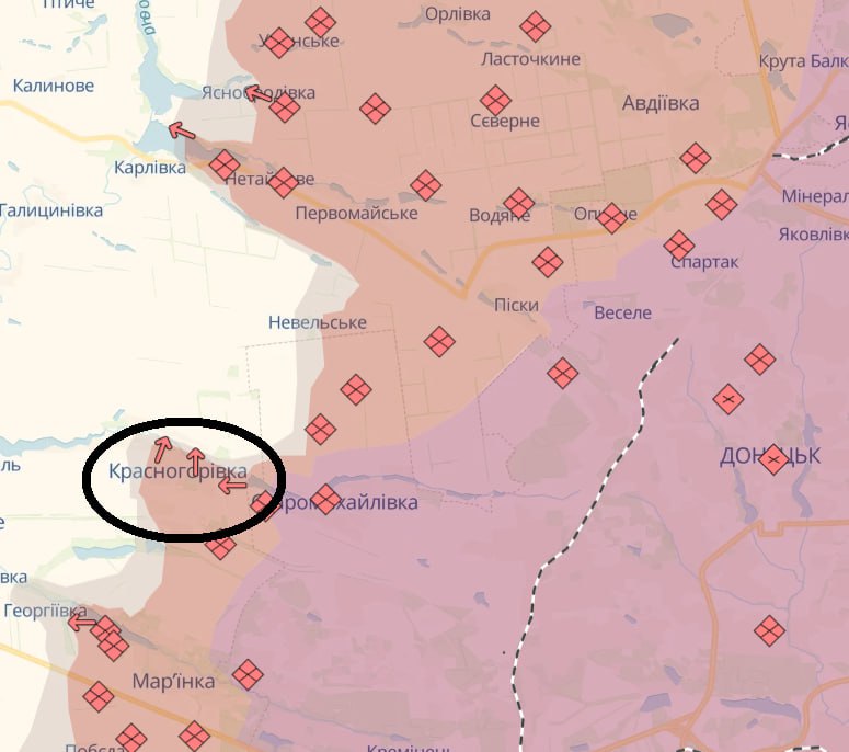 Отметим, что на карте Deep State Лисичное обозначено как находящееся под контролем ВСУ, в то время как большая часть Красногоровки – как находящаяся под контролем армии РФ.