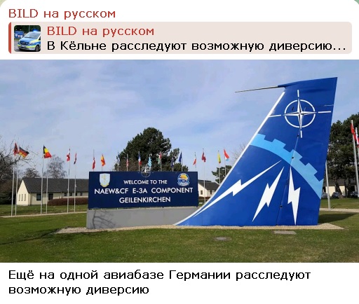 Также на авиабазе НАТО в Гайленкирхене, где базируются самолёты-разведчики Альянса, произошел подобный случай. Там могли загрязнить питьевую воду.