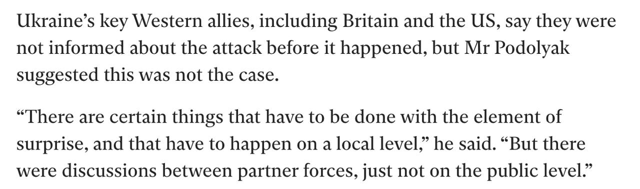 Напомним, что западные страны утверждали, что не были проинформированы о нападении на РФ. США при этом заявили, что не участвовали в планировании операции.