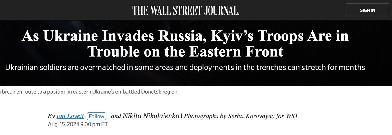 Курское наступление ухудшило и так тяжелое положение ВСУ на Донбассе - The Wall Street Journal