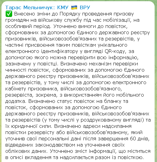 Кабинет министров уточнил требования к повесткам, механизм их проверки и отправки.