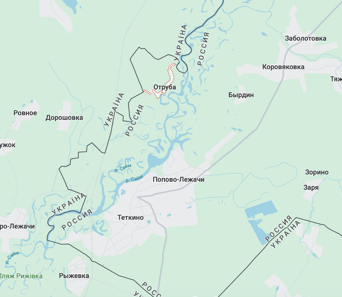 Вчера российские военные паблики сообщили, что армия РФ отошла в районе Теткино на восточный берег реки Сейм (там где находится само Теткино), взорвав мосты для "занятия более удобной линии обороны" по реке. Украинский военный телеграм-канал Deep State также отмечает здесь продвижение ВСУ. Хотя официально ни Украина, ни РФ этого не подтверждали.