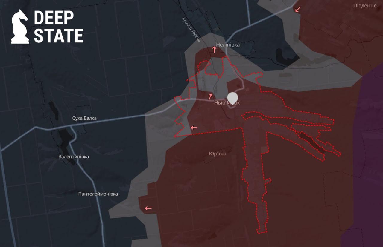 "В поселке сложилась уникальная ситуация, когда происходит хаос с обеих сторон", - пишет паблик. По его данным, в последние дни россияне обходят позиции ВСУ и пытаются сконцентрироваться в Нелиповке. Таким образом РФ пытается не захватить Нью-Йорк, а обойти его.