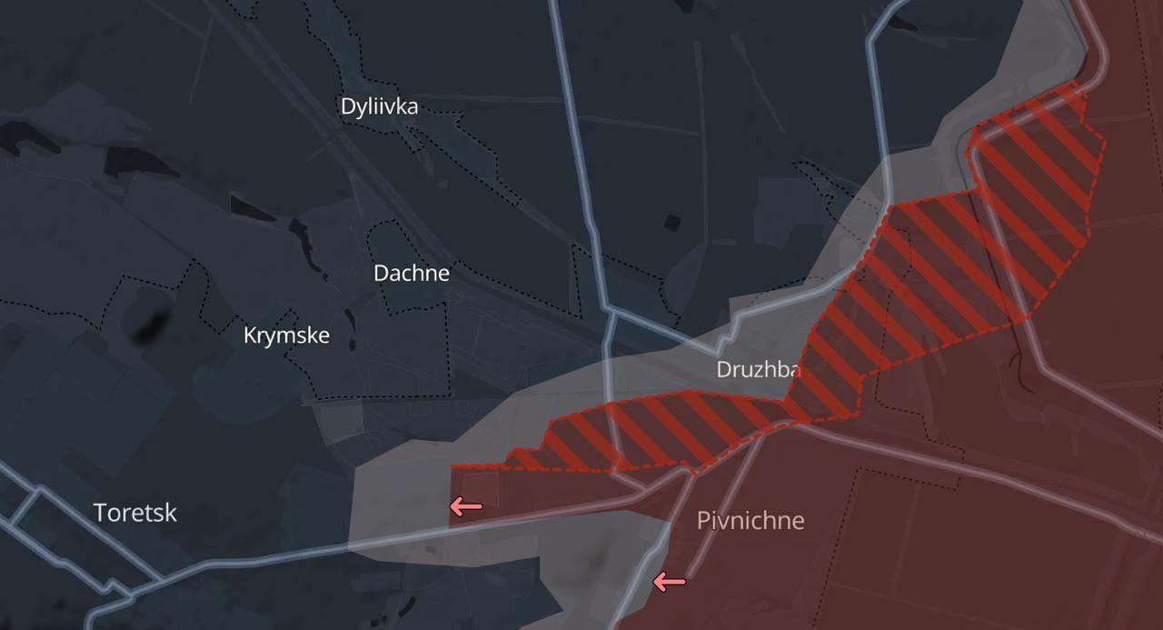 Российские войска за минувшие сутки продвинулись к востоку от Торецка - в районе Дружбы и Северного.