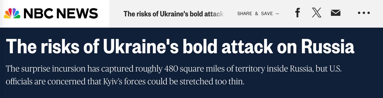 Если Украина попытается удерживать территорию под Курском в течение нескольких месяцев, "будет сложно даже просто логистически снабжать ее перед лицом российской воздушной атаки".
