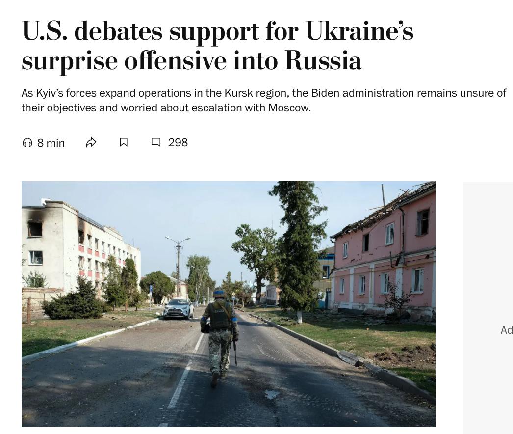 Администрация президента США Джо Байдена обсуждает, следует ли помочь Украине удержать и расширить захваченные территории в Курской области.