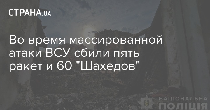 Во время сегодняшней массированной атаки РФ были уничтожены 5 крылатых ракет из 10-ти и 60 ударных беспилотников из 81-го. Об этом сообщают Воздушные силы ВСУ.