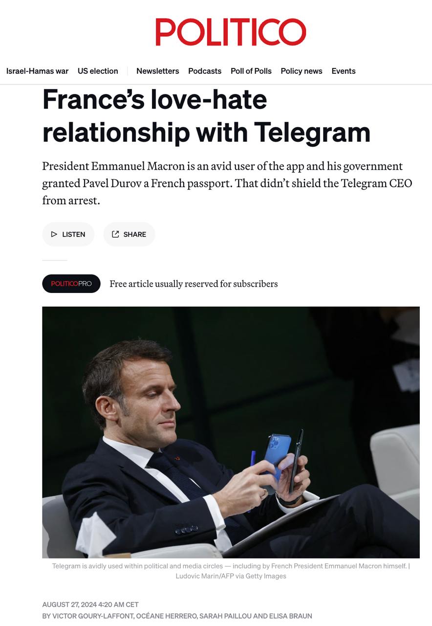 Президент Эммануэль Макрон и вся политическая элита Франции активно использует Telegram, а правительство выдало Павлу Дурову французский паспорт. Но это не спасло гендиректора мессенджера от задержания в Париже.