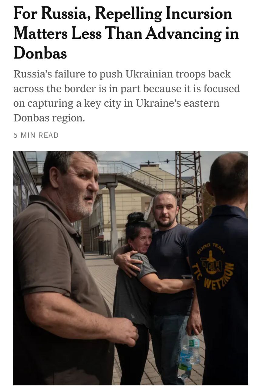 РФ отдает приоритет захвату Донбасса и не бросает достаточные силы для защиты Курской области - NYT