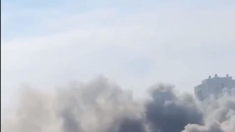 Один из ударов пришелся по району частной застройки. Горят несколько частных домов и супермаркет.