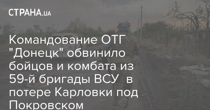 Командование оперативно-тактической группы (ОТГ) "Донецк" обвинило в потере Карловки на Покровском направлении бойцов и командира 11-го мотопехотного батальона 59-й бригады ВСУ.