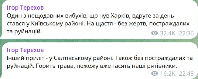 15.28 О взрывах в Харькове сообщают местные паблики.
