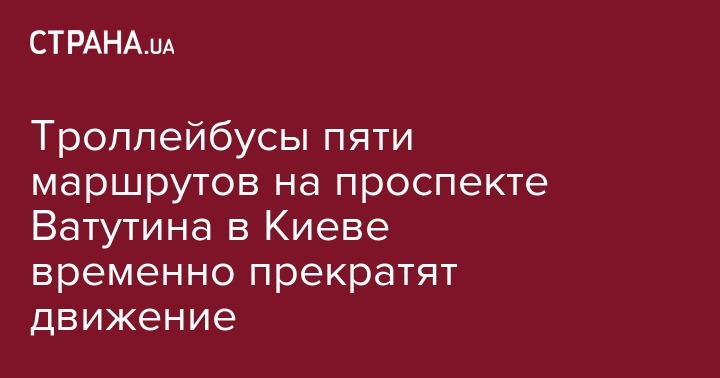 Троллейбусы пяти маршрутов на проспекте Ватутина в Киеве временно прекратят движение