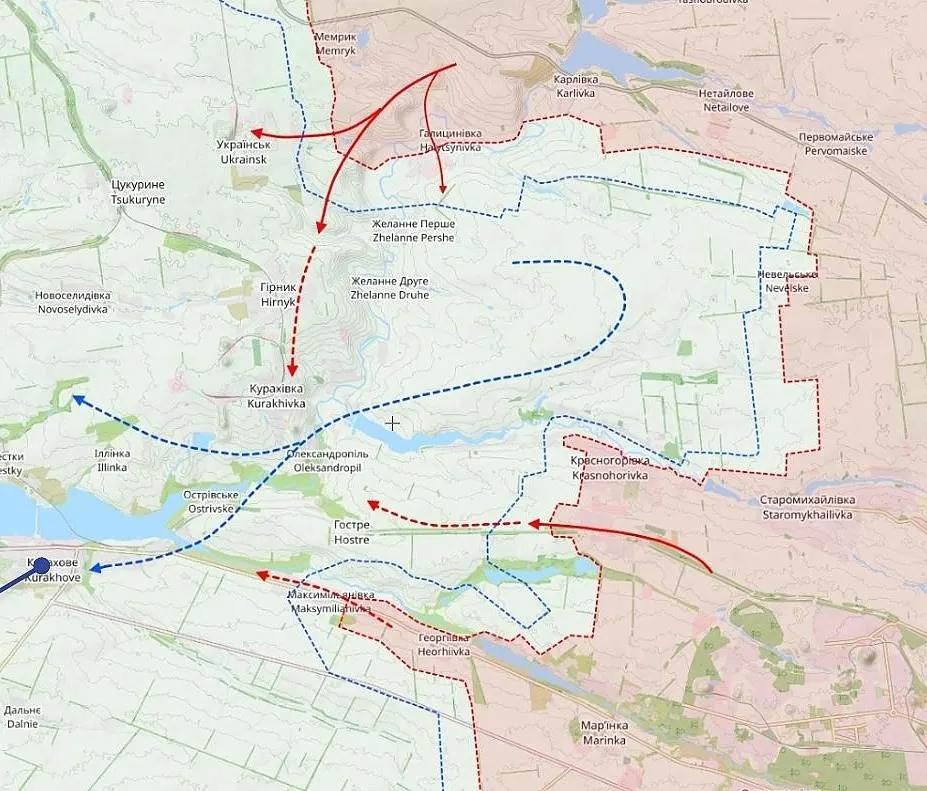 Сильная российская группировка, численность которой может достигать десятков тысяч человек, обходит крупные украинские силы, удерживающие линию между селом Мемрик и рекой Волчья.