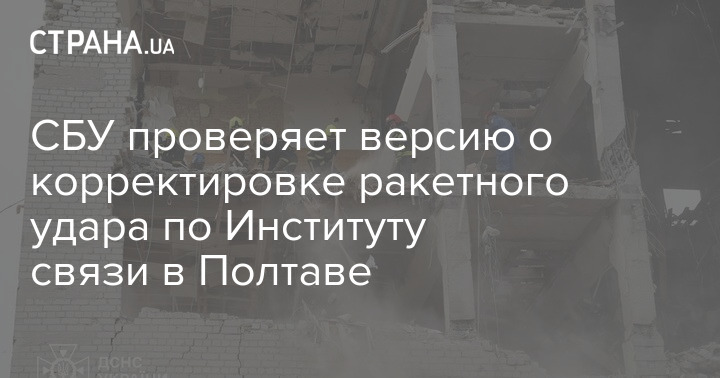 Служба безопасности Украины проверяет версию о корректировке ракетного удара по Институту связи в Полтаве. Об этом заявил начальник полтавского управления СБУ Константин Семенюк во время брифинга.