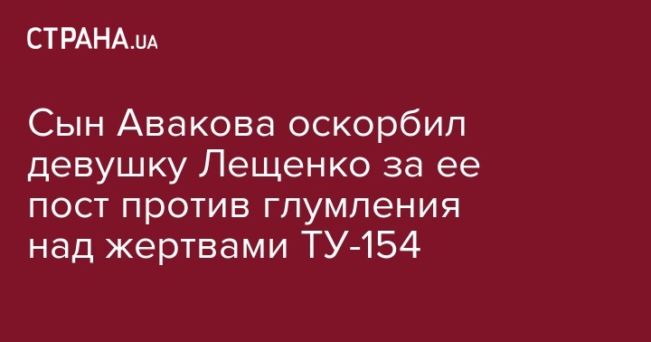 Александр Аваков, сын главы МВД Украины, в оскорбительной форме ответил ди-джею Насте Топольской на ее пост, в котором она пыталась застыдить тех, кто глумится над погибшими в катастрофе Ту-154 людьми. Свой ответ девушке Аваков-младший написал в Facebook.