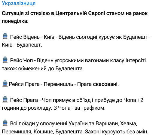 • рейс Прага - Чоп едет в объезд, потому прибудет в Чоп на два часа позже.