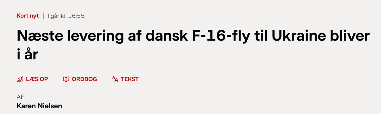 "Дания поставит сюда дополнительную партию самолетов F-16 во второй половине 2024 года", - сказал Поульсен.