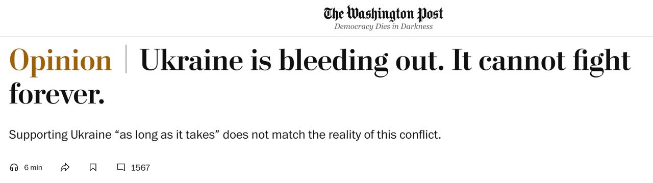 Западная поддержка Украины по принципу "столько, сколько потребуется" "не соответствует реалиям этого конфликта", поскольку у Киева не хватит солдат для "бесконечной изнуряющей войны".