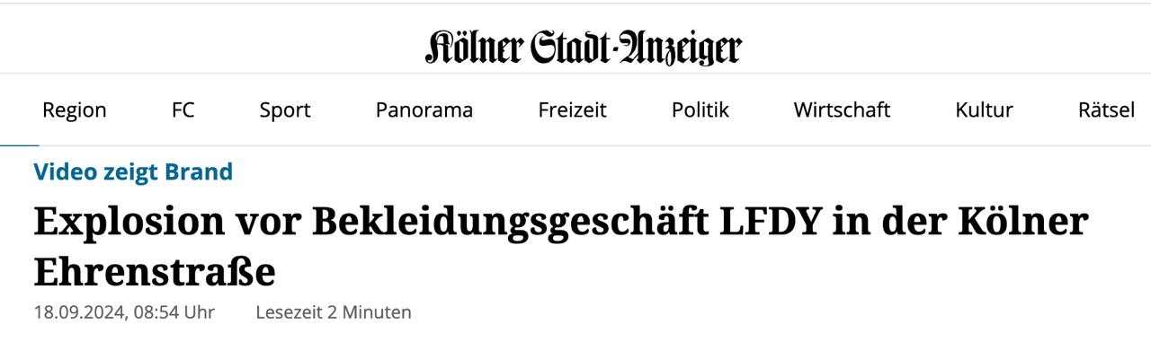В немецком Кельне сегодня утром снова прогремел взрыв - перед магазином одежды.