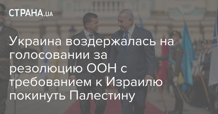 Украина воздержалась при голосовании в Генеральной ассамблее ООН за требование к Израилю исполнить заключение суда ООН и покинуть оккупированную территорию Палестины.