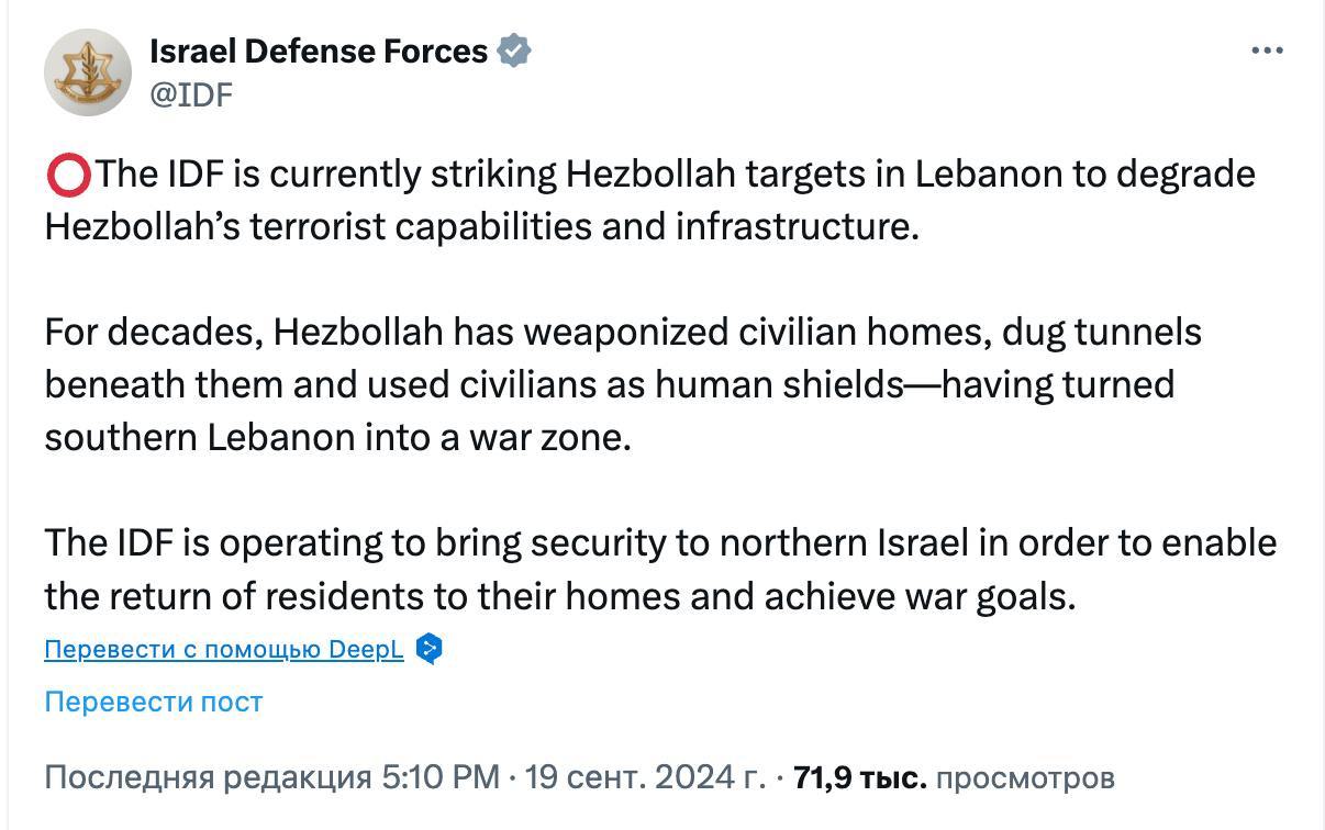 Сегодня, 19 сентября, Израиль начал массированный обстрел Ливана.
