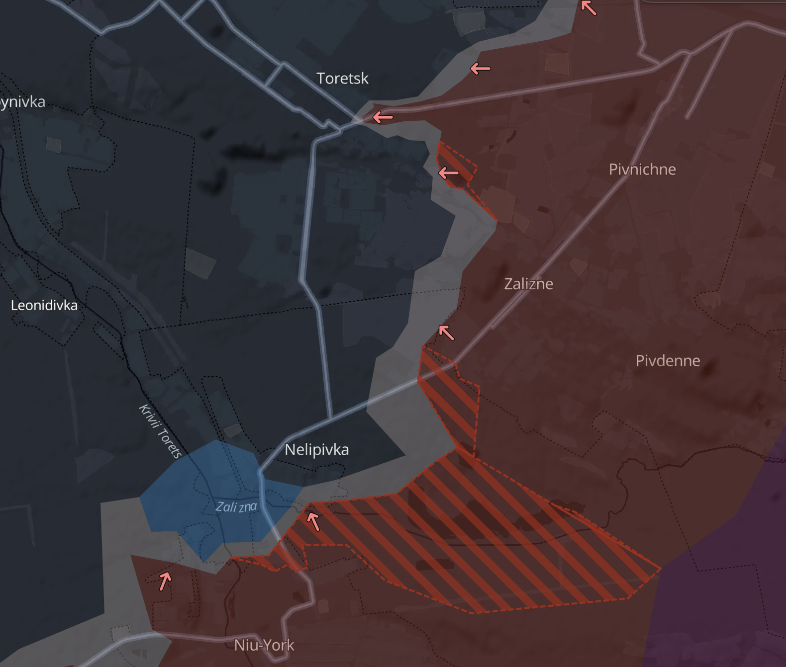 По данным Deep State, россияне продвинулись к востоку от Нелеповки и под Торецком.