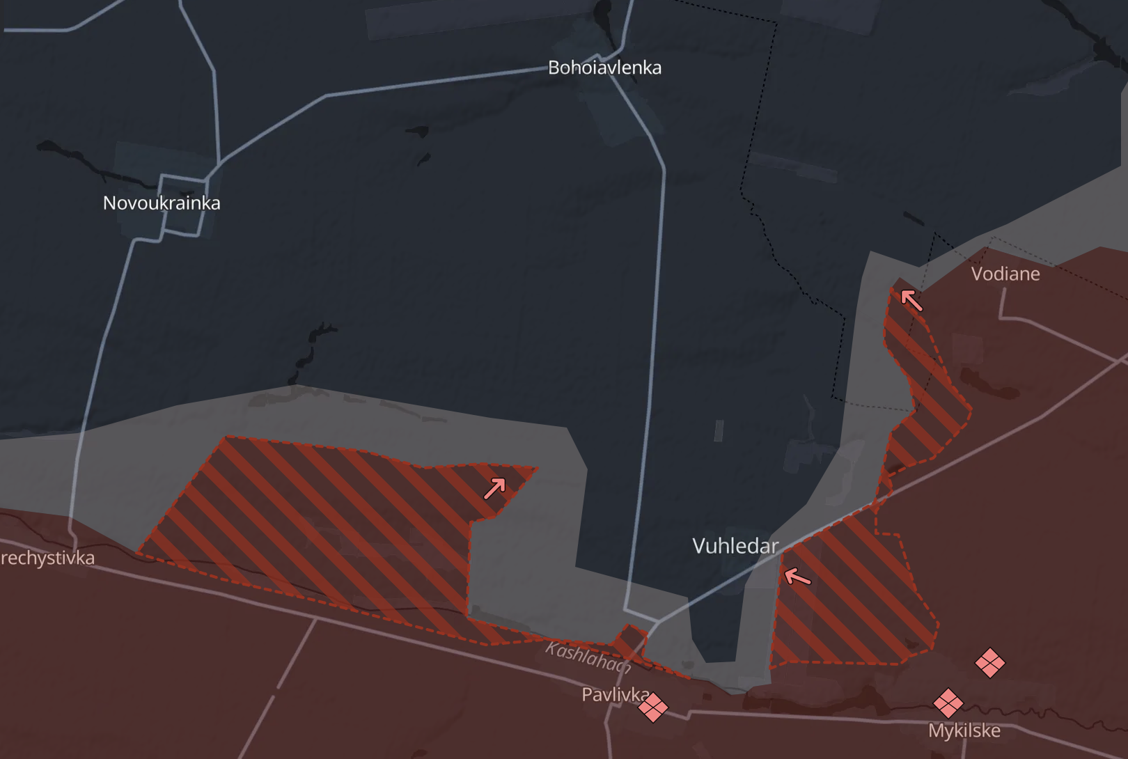 Российские войска прорвали украинскую линию обороны по реке Кашлагач к западу от Угледара. И бои идут уже менее чем в километре от дороги на Богоявленку, по которой снабжается Угледар. С ее перерезанием для логистики останутся только проселочные дороги, и фактически город будет в окружении.