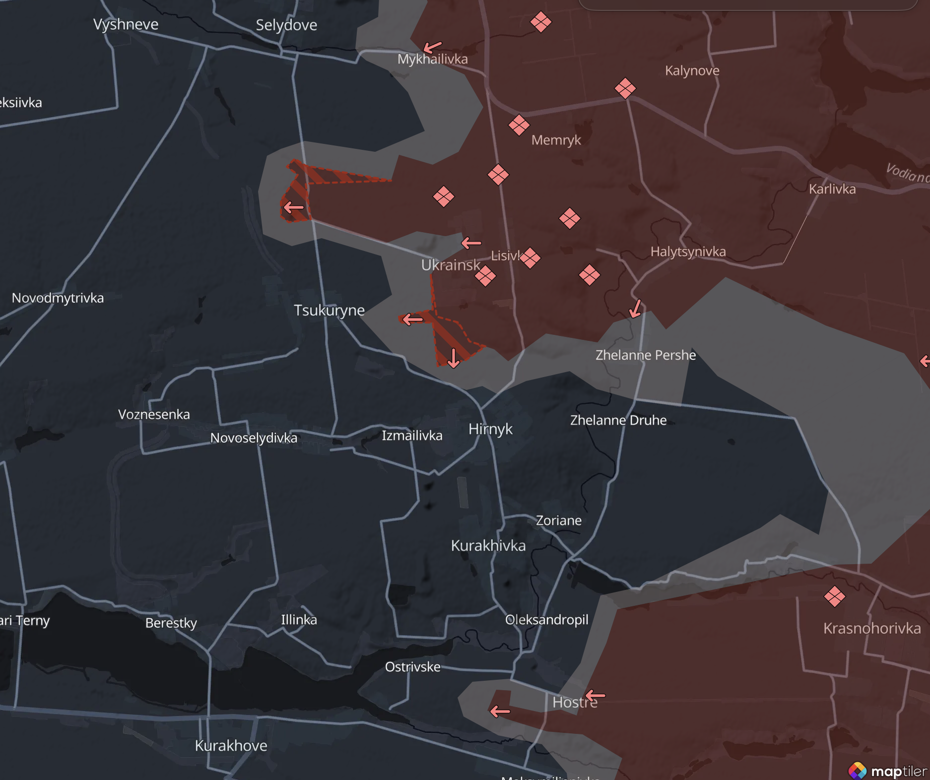 Ряд пабликов пишут, что бои идут уже и в самом Цукурино, куда прорвались российские войска (но пока подтверждений этому нет). В случае захвата Цукурино российские войска смогут двигаться на юг к Курахово, к западу от основной линии укреплений ВСУ в Горняке и южнее него.