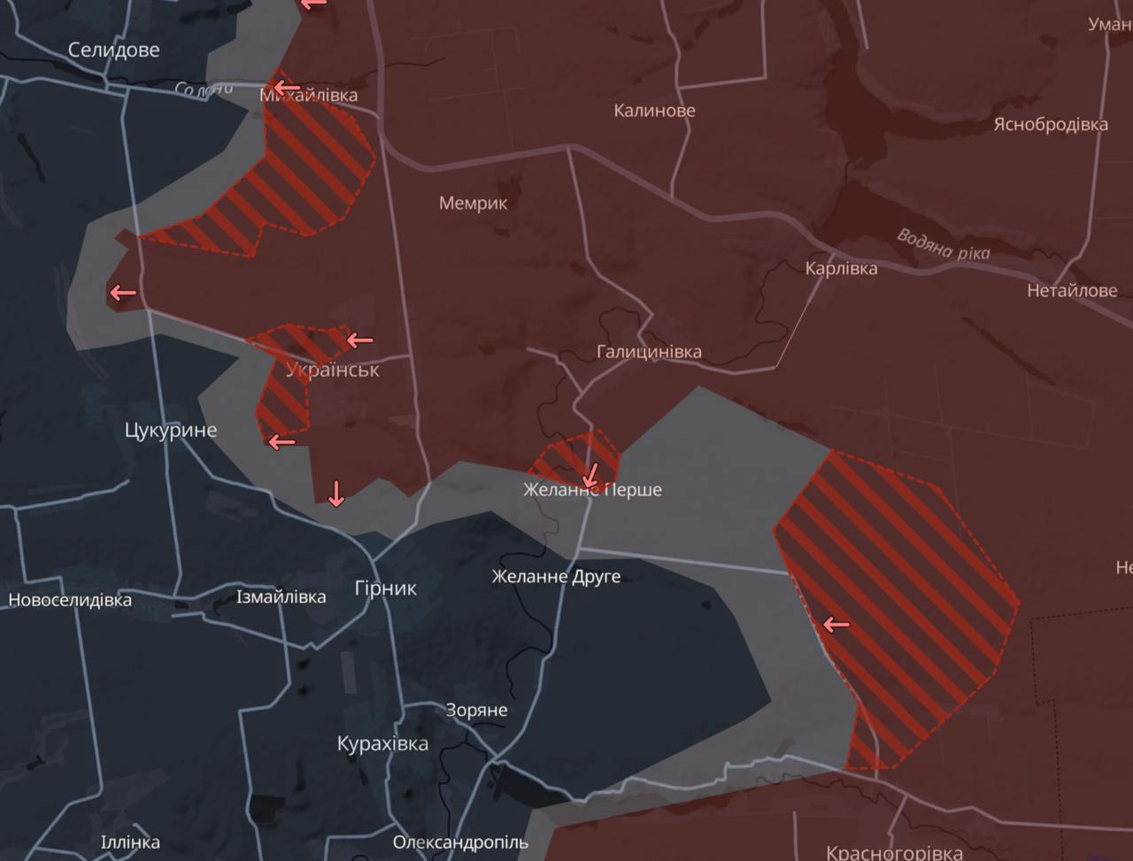 Также сообщается, что россияне продвинулись под Селидово, приблизившись к городу с юга и востока.