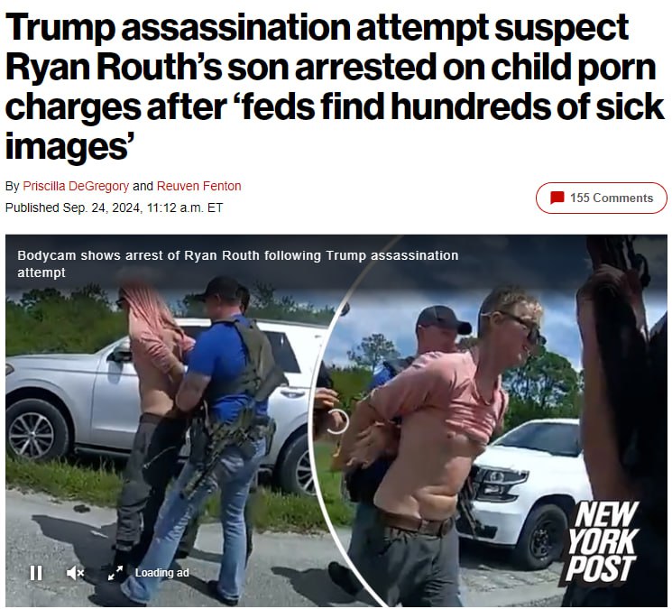 Напомним, газета The Wall Street Journal писала, что подозреваемый в покушении на кандидата в президенты Дональда Трампа Райан Уэсли Рут угрожал убить Владимира Путина и главу КНДР Ким Чен Ына.