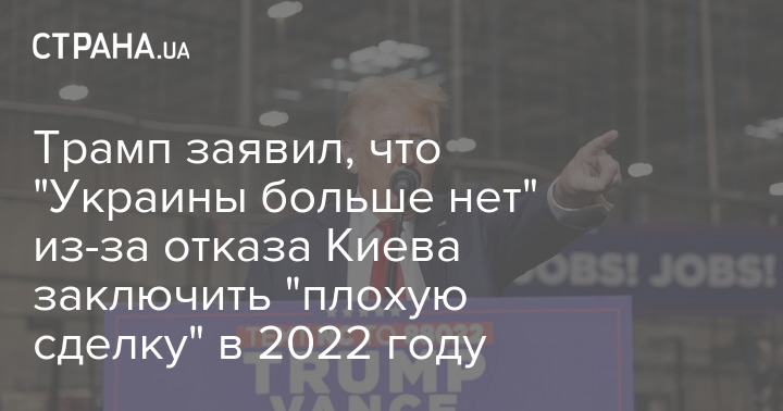 Кандидат в президенты США Дональд Трамп заявил, что "Украины больше нет", потому что страна отказалась заключить "плохую сделку" в 2022 году.