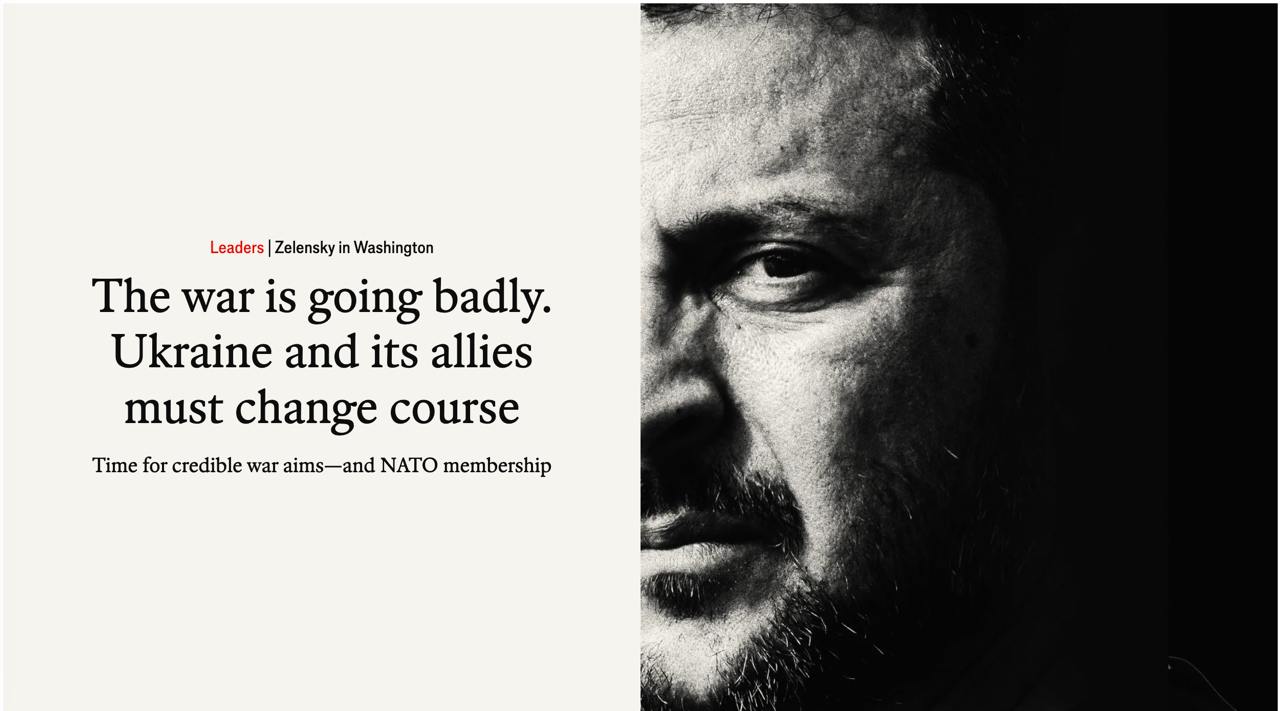 Также Economist призывает США дать Украине перспективу вступления в НАТО, но без захваченных Россией территорий и с обещанием не размещать иностранные войска в мирное время.