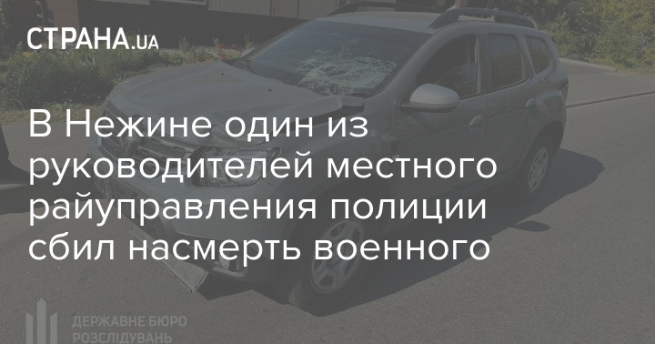 В Нежине один из руководителей местного райуправления полиции на служебном авто сбил насмерть военного. Об этом сообщает Государственное бюро расследований.