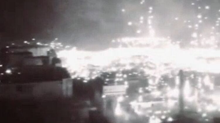 Появились кадры ночного неба над Угледаром Донецкой области, за который сейчас идут бои.