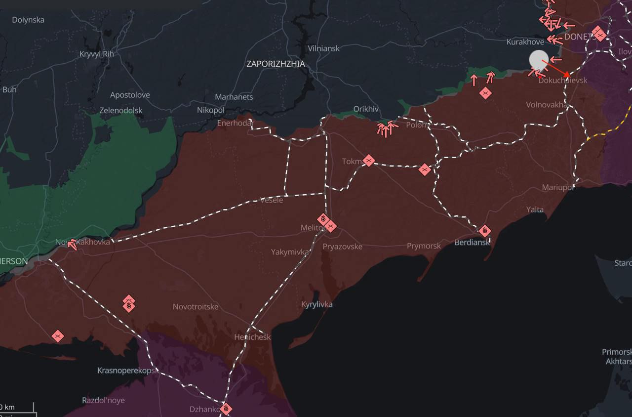 Это попытка взять в "котел" большой участок фронта юго-западнее Донецка, наступая как с севера (район Покровск-Селидово), так и с юга (от Угледара или Великой Новоселки), в направлении к западу от Курахово, чтобы таким образом вынудить украинские войска отступить на десятки километров на запад к границе Днепропетровской и Запорожской областей. Что, в свою очередь, создаст угрозу наступления россиян широким фронтом к Днепру и Запорожью.