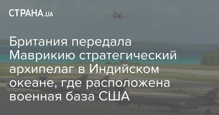 Великобритания отказалась от суверенитета над архипелагом Чагос в Индийском океане. Это стратегически важные острова, на которых расположена ключевая американская военная база в регионе - Диего-Гарсия. Здесь базируются, в частности, бомбардировщики дальнего радиуса действия, которые ранее активно были задействованы во время войн в Ираке и Афганистане.