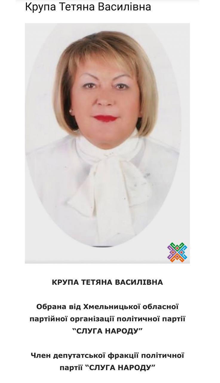 ГБР не называет имена пойманных на незаконном обогащении. СМИ пишут, что это заслуженный врач Украины, главный врач учреждения, дающего инвалидность в Хмельницкой области, член депутатской фракции Хмельницкого облсовета от "Слуги народа" Татьяна Крупа и 34-летний Александр Крупа. Глава семейства Владимир Крупа тоже известен в регионе: до 2021 года он руководил службой аудита Хмельницкой области.
