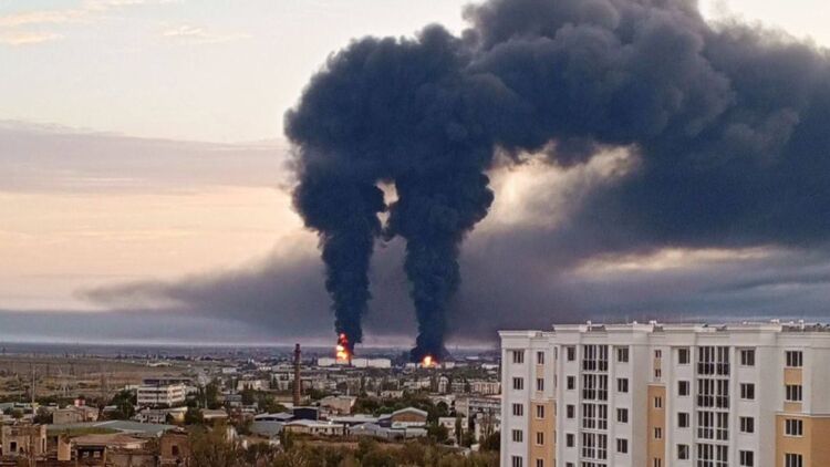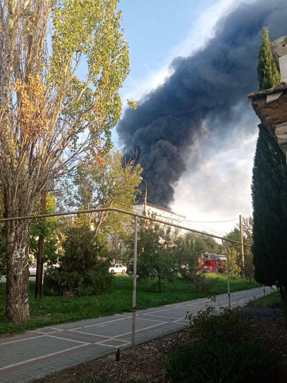 В захваченной РФ Феодосии ночью был прилёт по нефтебазе. Пожар продолжается до сих пор. В городе перекрыли ряд улиц.