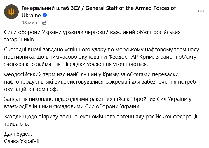 Тем временем в Генштабе ВСУ подтвердили удар по Феодосии.