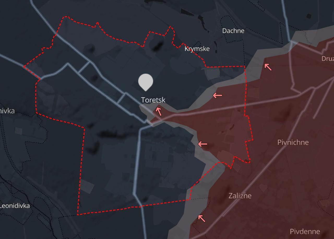А сегодня спикер штурмовой бригады "Лють" Артем Джепко заявил, что российские войска дошли уже до шахты "Центральная". Она находится в центре Торецка.