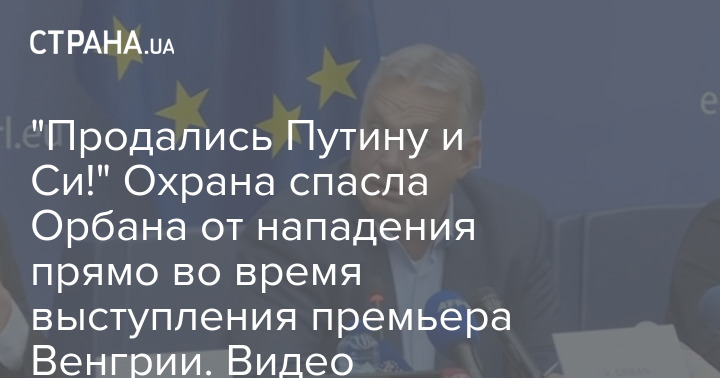 "Продались Путину и Си!" Охрана спасла Орбана от нападения прямо во время выступления премьера Венгрии. Видео