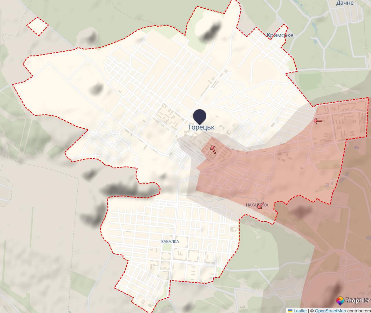 ВСУ контролируют около 40-50% города Торецк Донецкой области. Остальная часть захвачена российскими войсками.