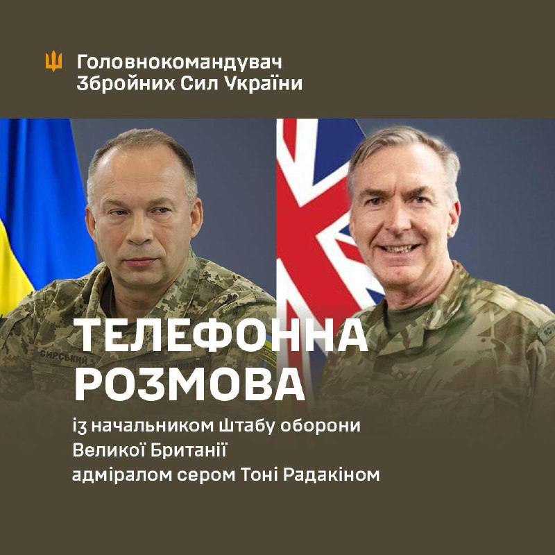 9.32 Британия готовит предложения касательно дальнобойных ударов Украины по территории РФ, дал понять главком Сырский после разговора с начальником штаба обороны Британии Радакиным.