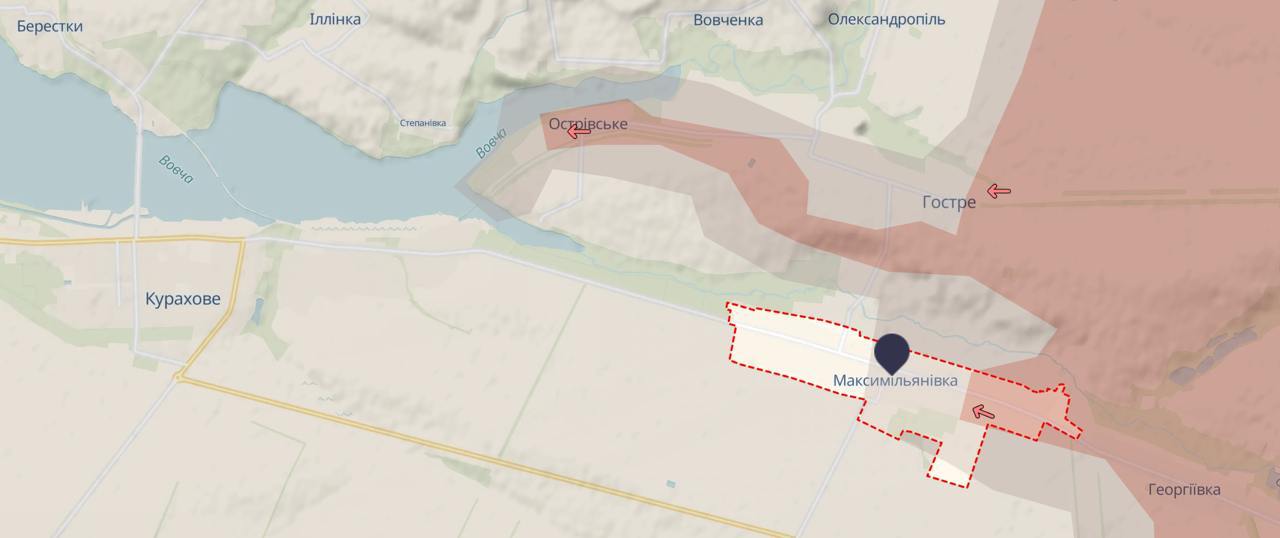Однако захвачены Острое и Островское с северного фланга, что создает опасную ситуацию для украинских военных в Максимильяновке.