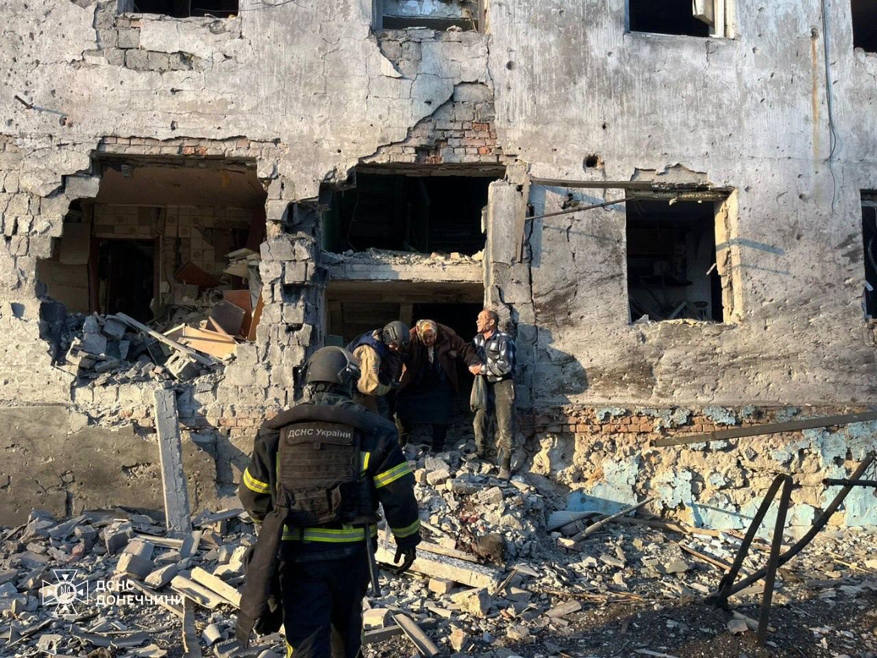 15:31 Новые кадры из Мирнограда после обстрела. На пятиэтажку сбросили КАБ, видны масштабные разрушения.