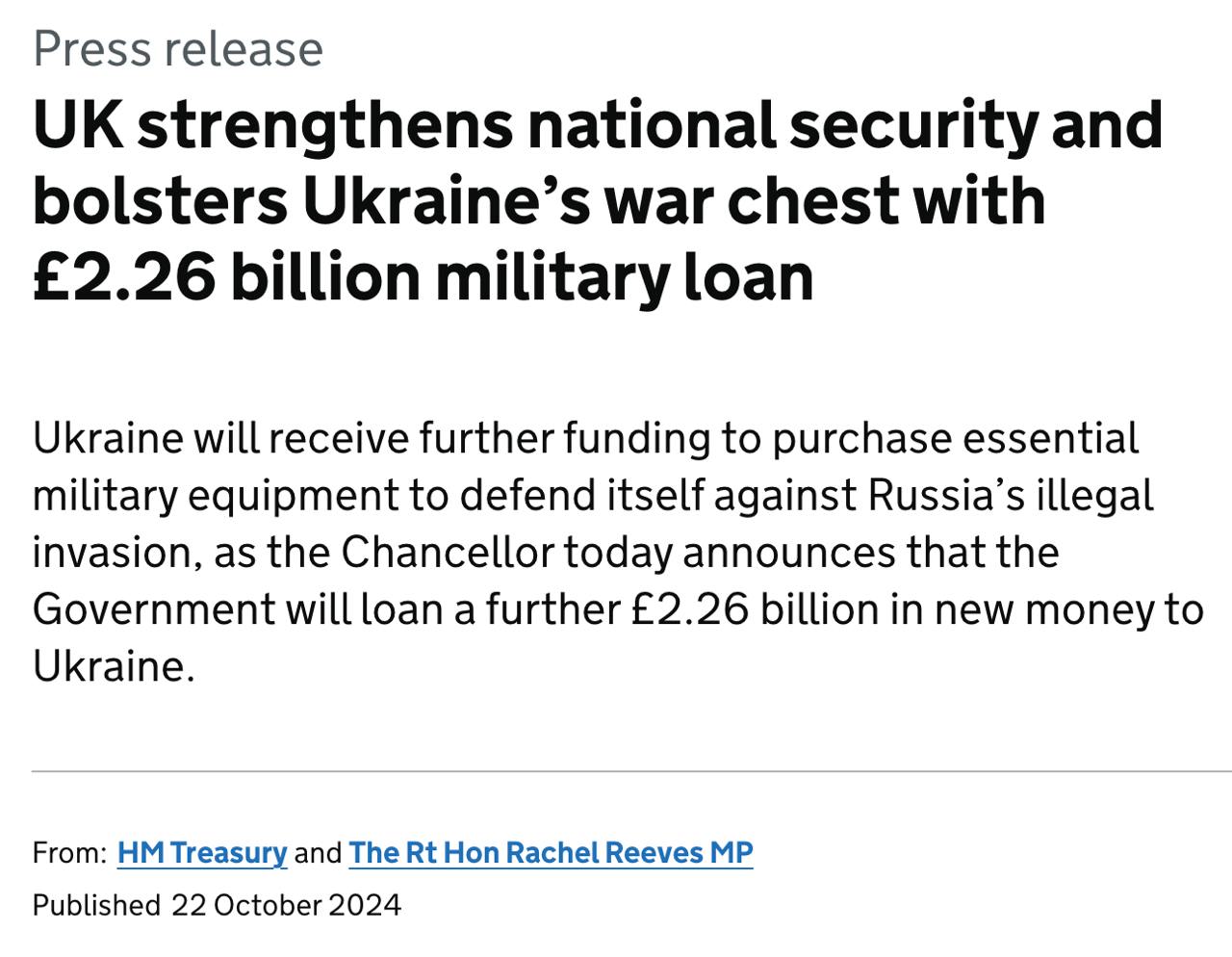 Это вклад Британии в обещанный "Большой семеркой" общий кредит на 50 млрд долл.