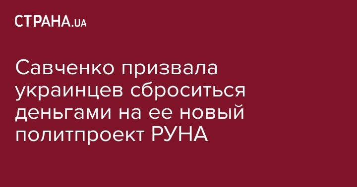 Савченко призвала украинцев сброситься деньгами на ее новый политпроект РУНА