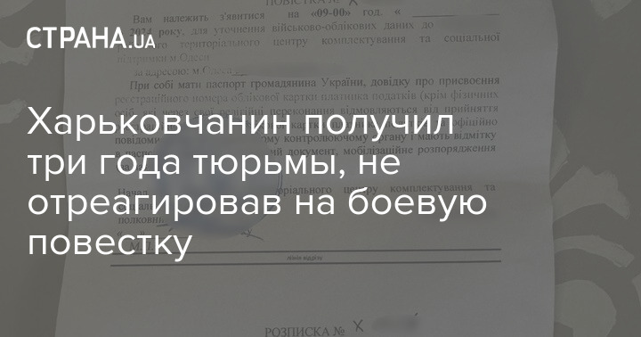 Три года тюрьмы дал суд 52-летнему харьковчанину, который проигнорировал боевую повестку.