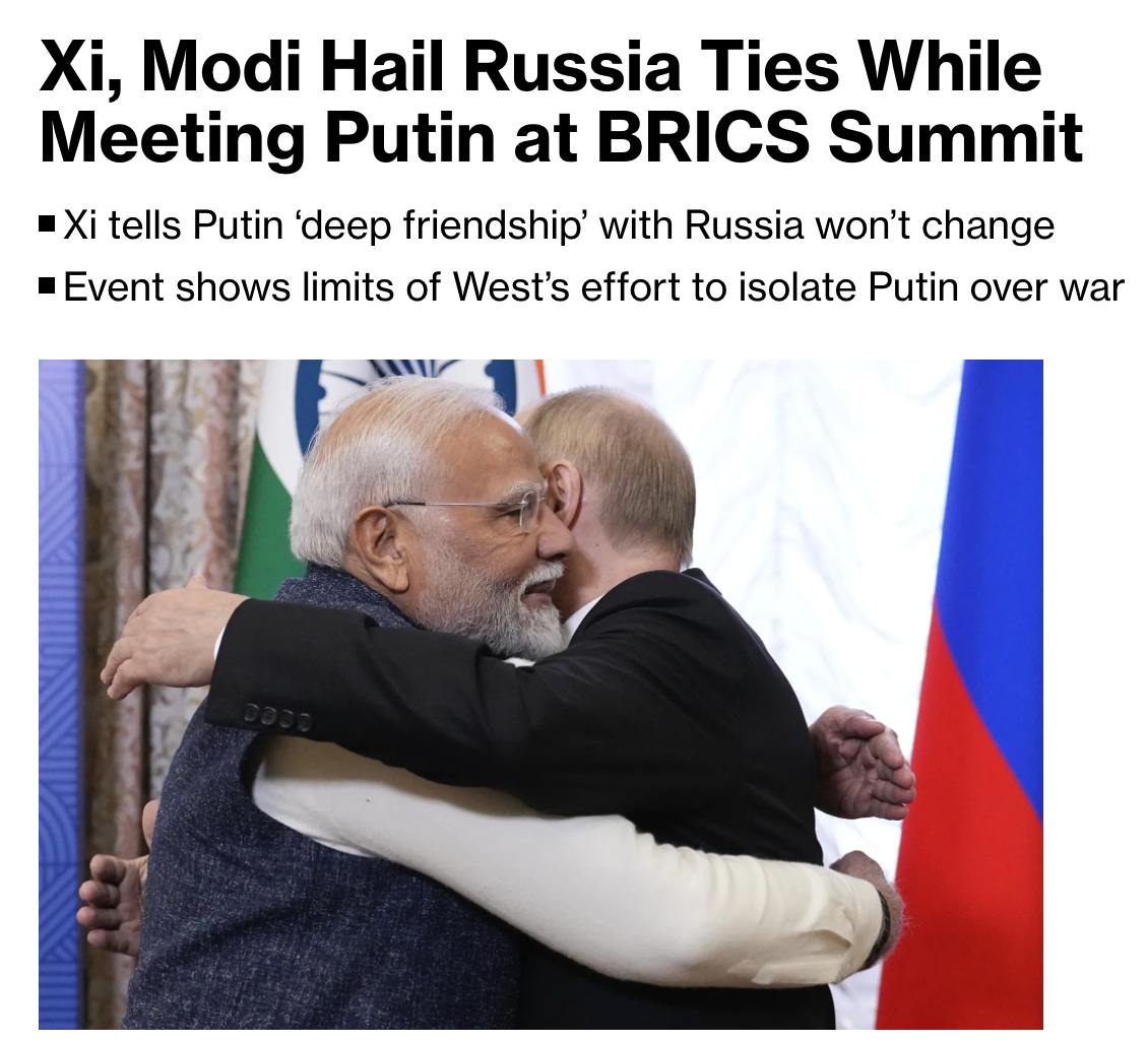 При этом издание отмечает, что лидеры Индии и Китая "приветствовали связи с Россией", а Си Цзиньпин сказал Путину, что "глубокая дружба" с Россией не изменится.